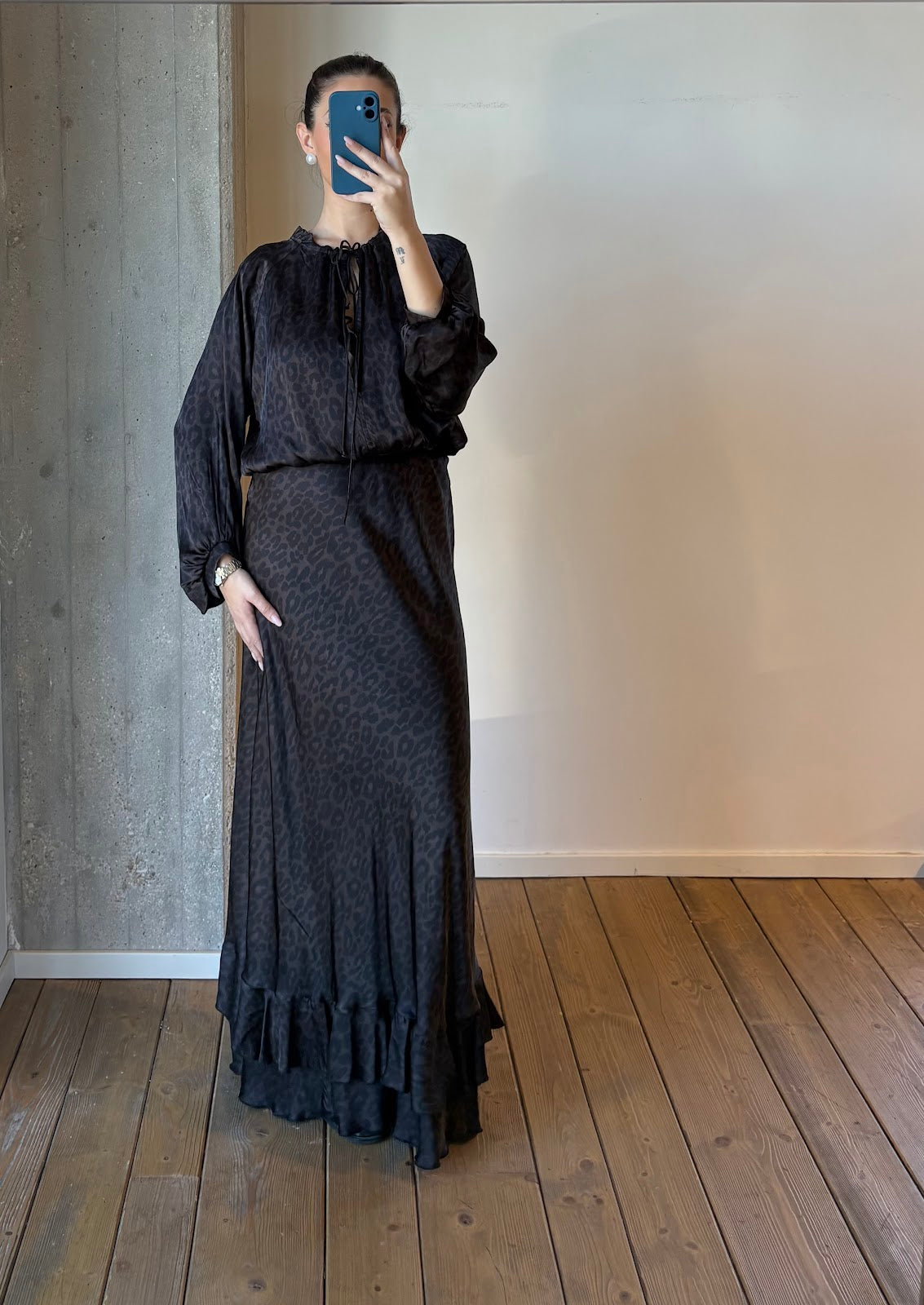 **Abito lungo in viscosa animalier**