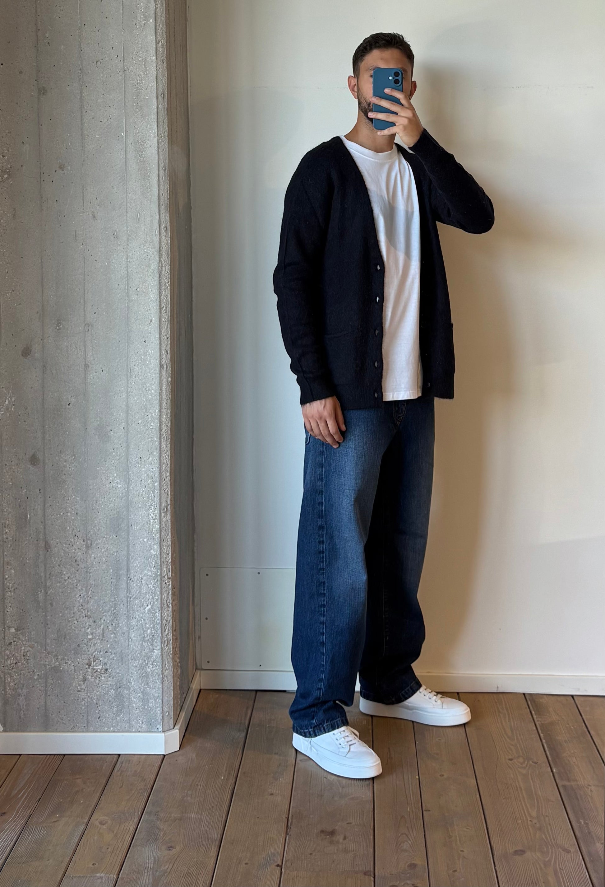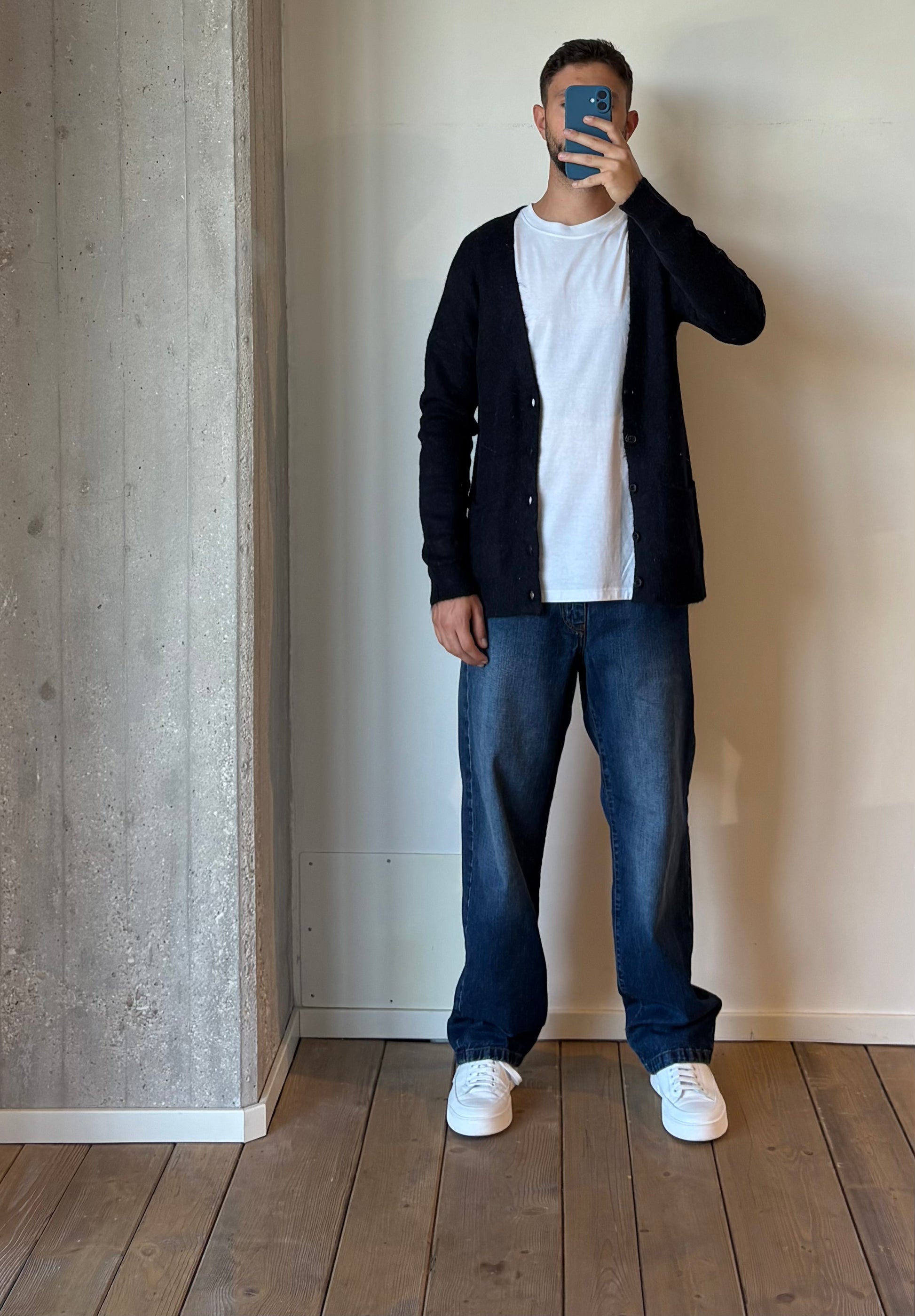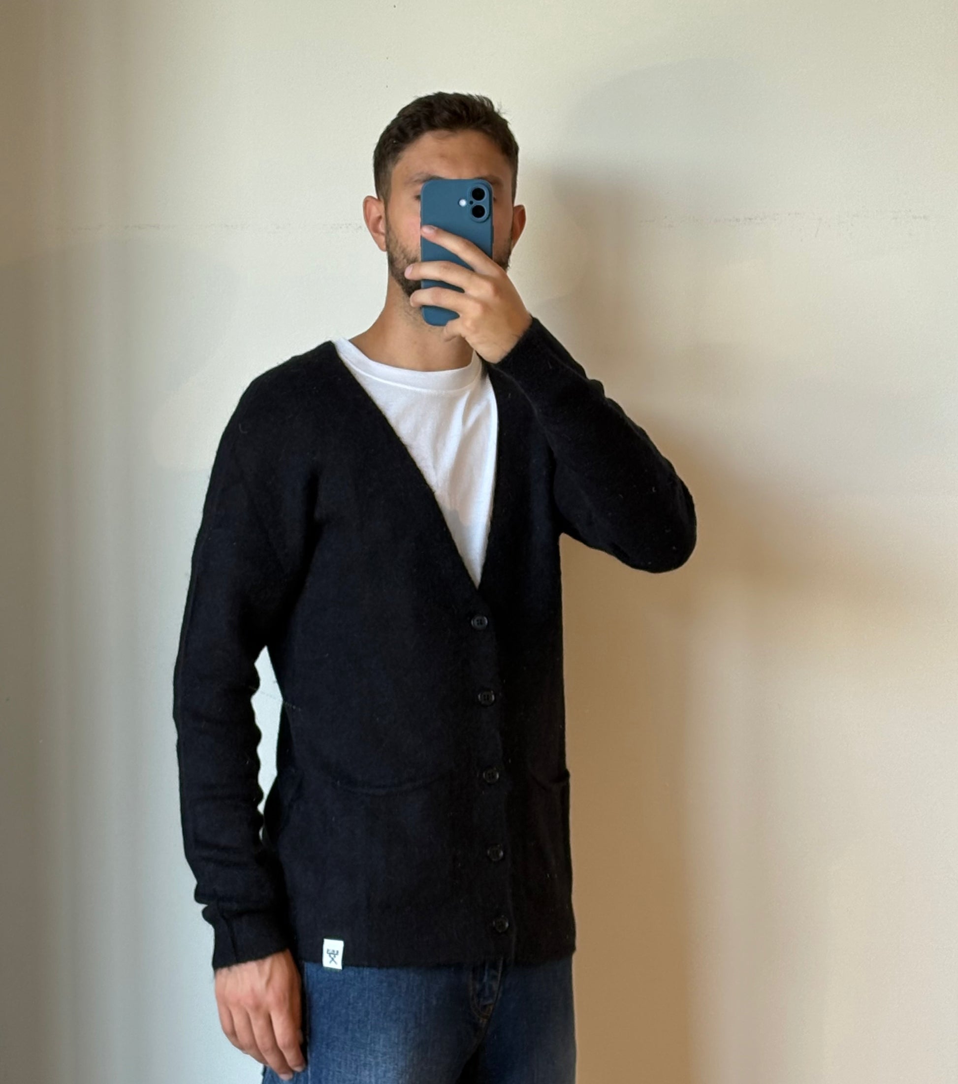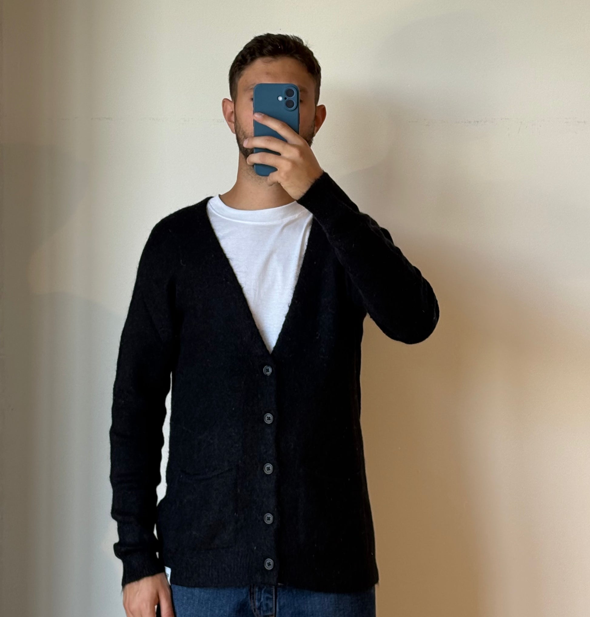 Cardigan basico in misto lana con scollo a V.