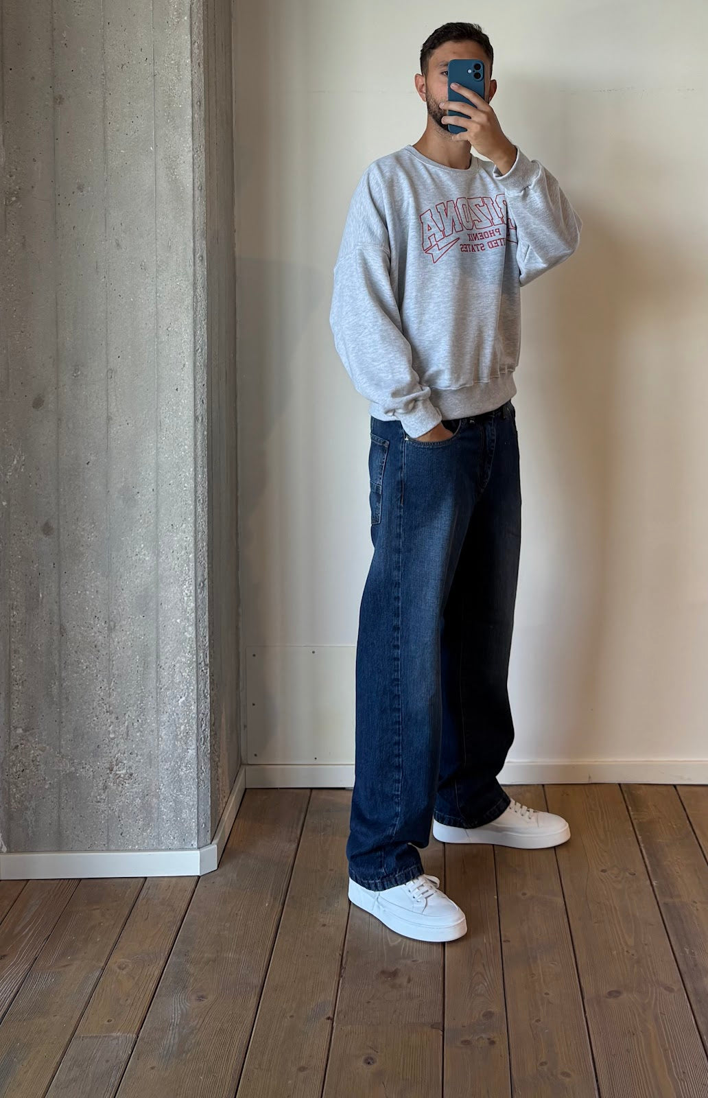 Felpa in cotone con taglio cropped con grafica frontale a contrasto, adatta a look più comfy o street.