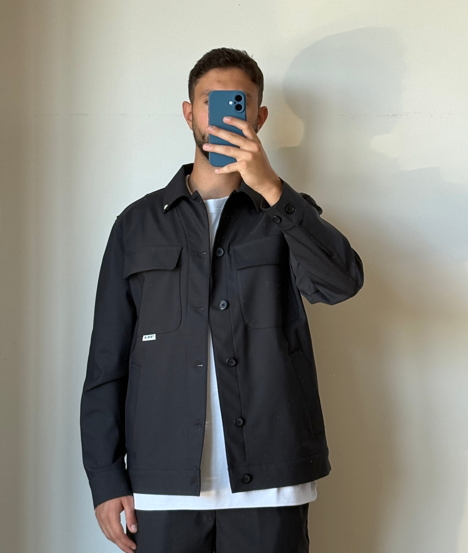 Maxi tasche sul fronte con bottoni e bandierina logo.