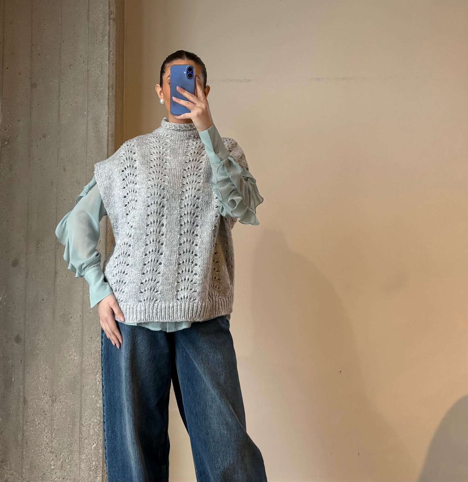 GILET IN MISTO LANA CON COLLO A CRATERE E MICRO PAILLETTES.