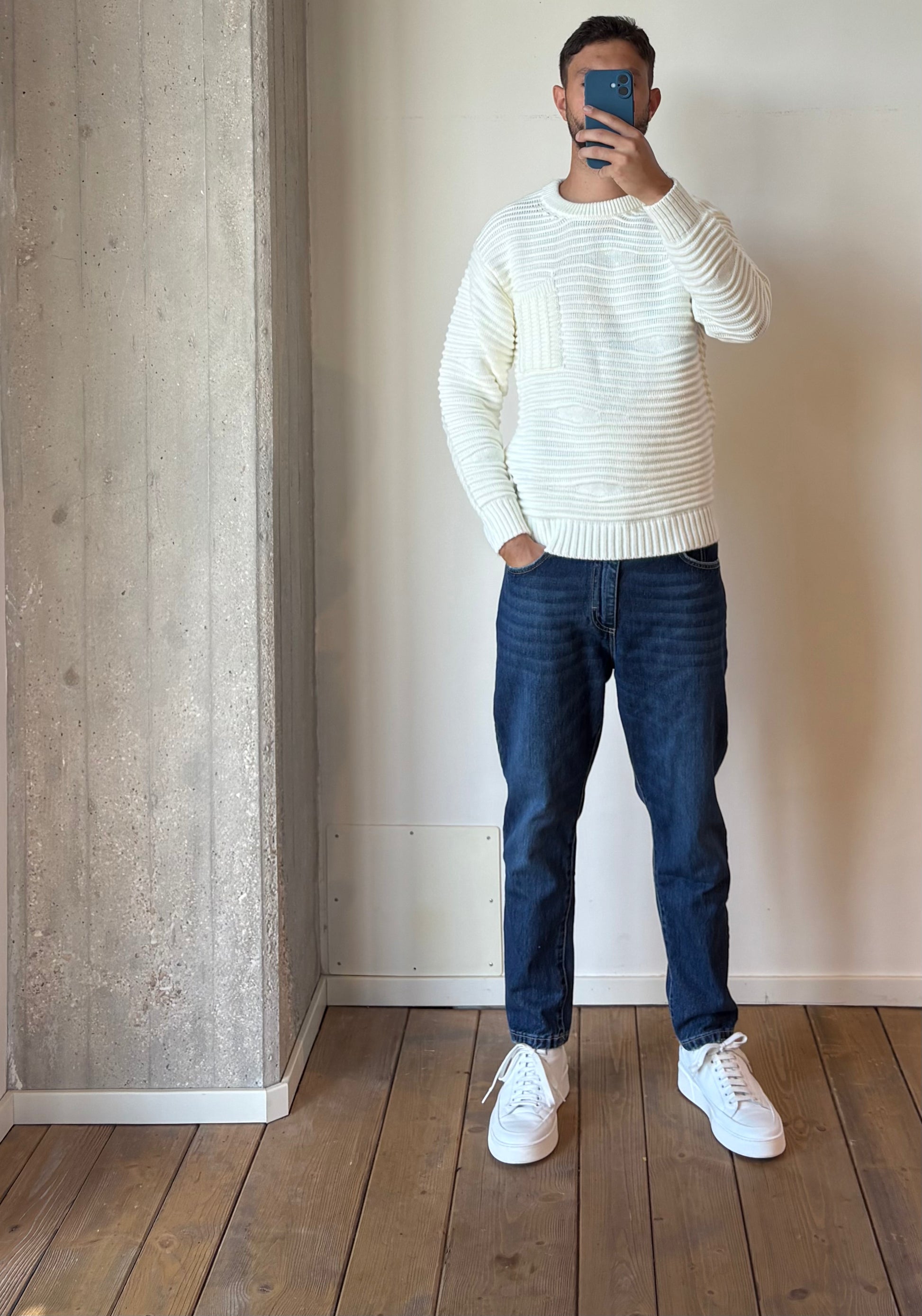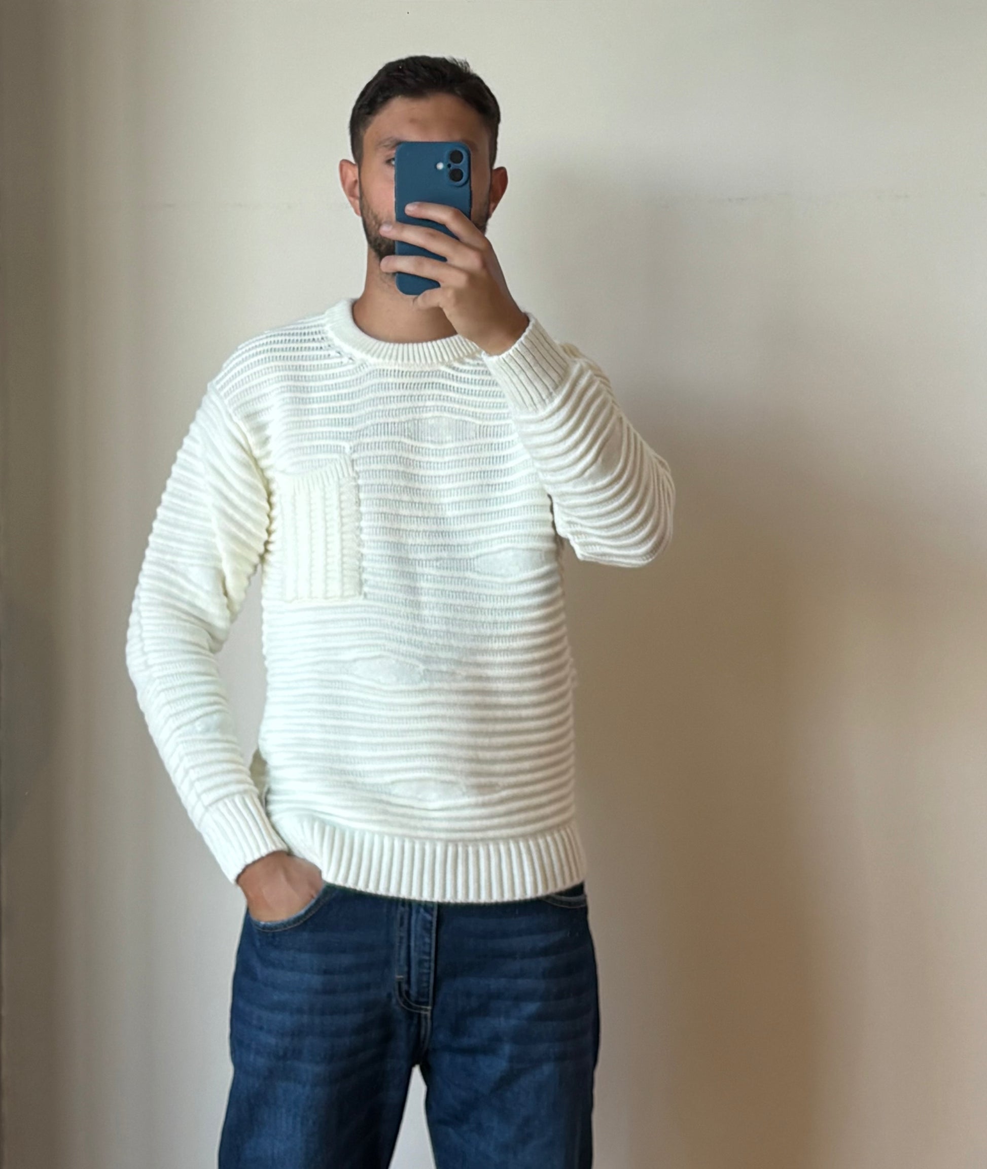 Girocollo burlè manica lunga in dralon con lavorazione in rilievo effetto onda.