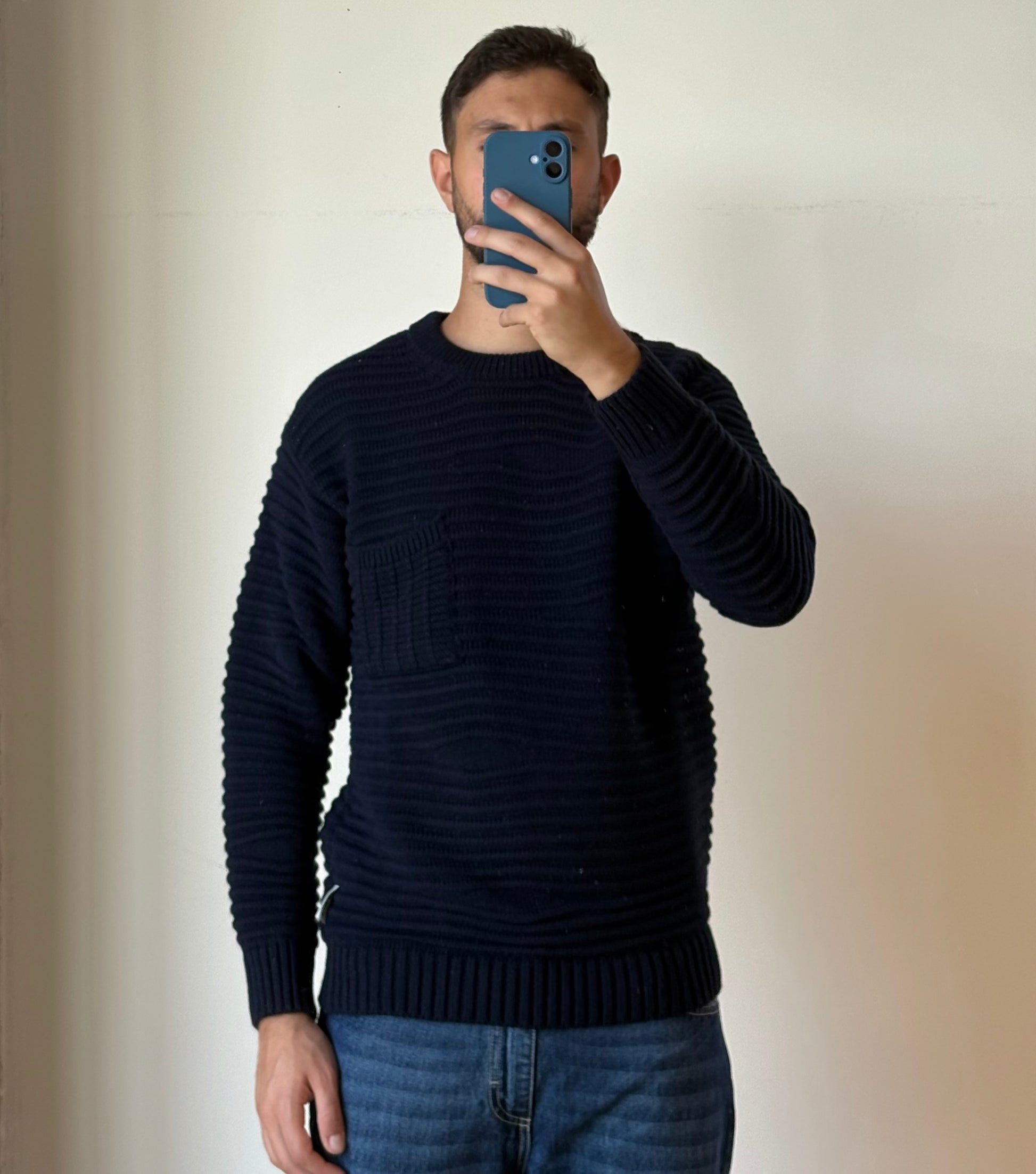 Il modello è alto 180 cm ed indossa una taglia L
