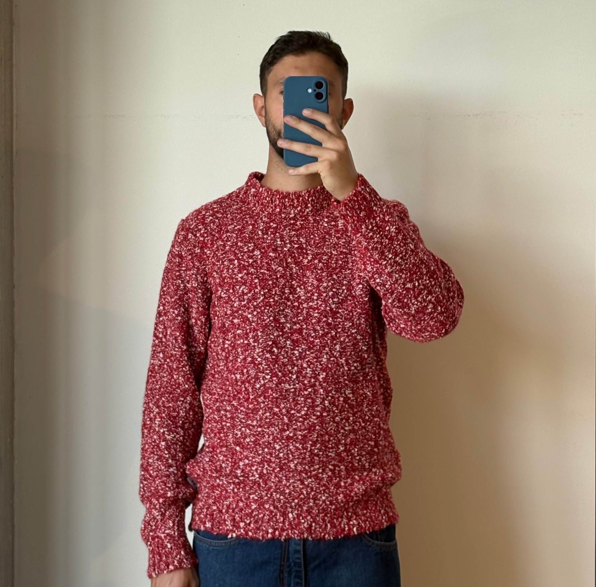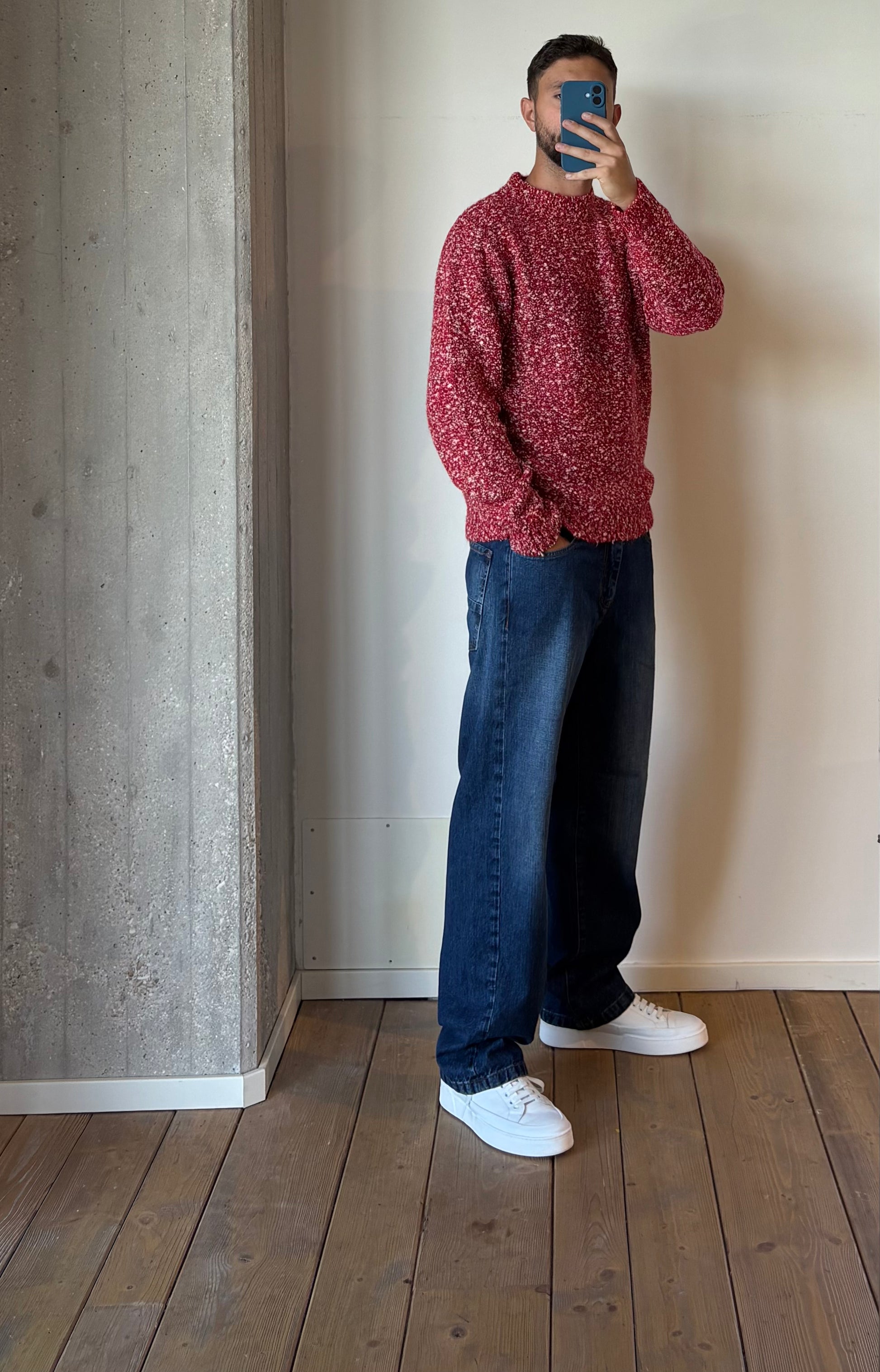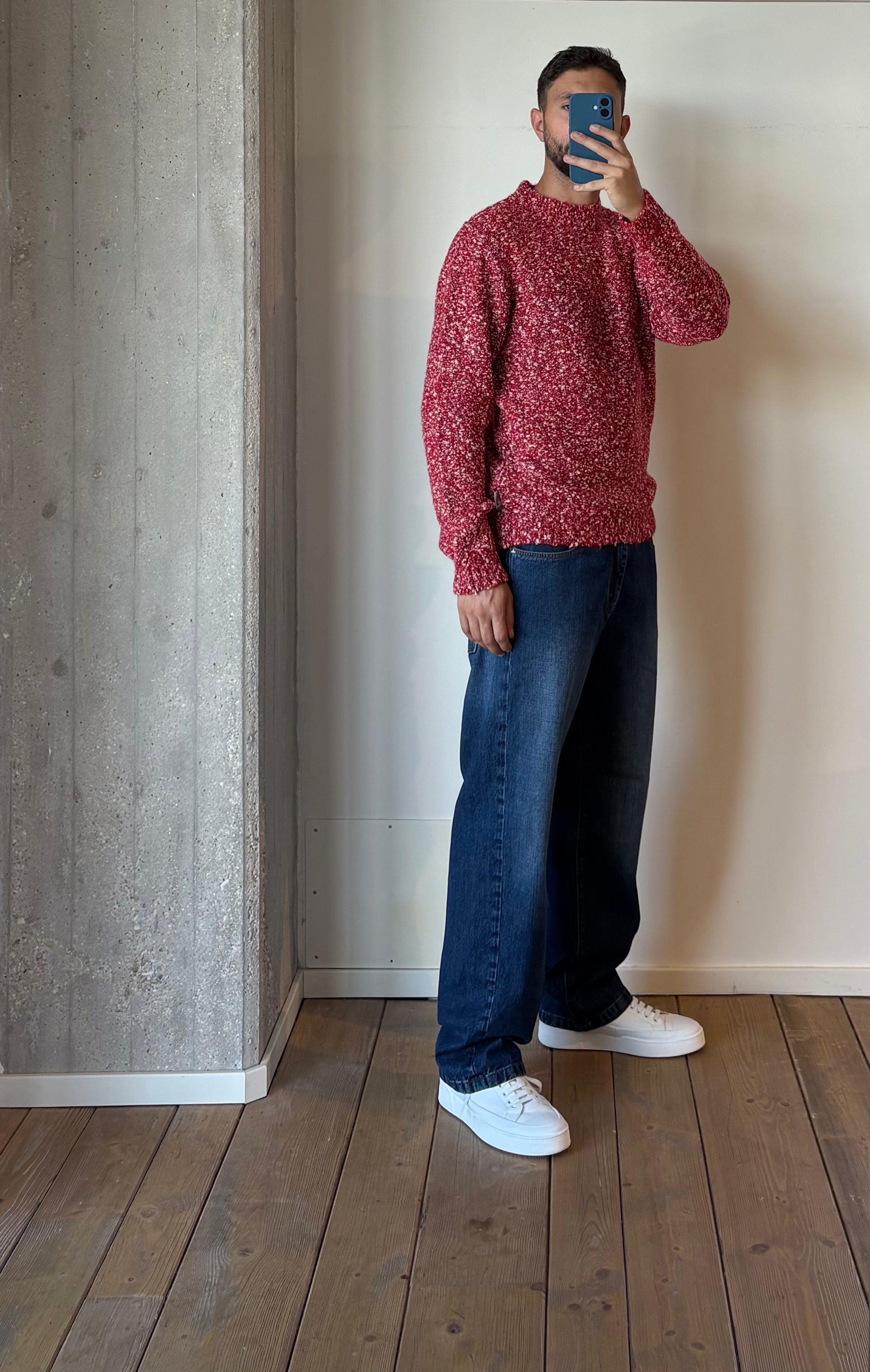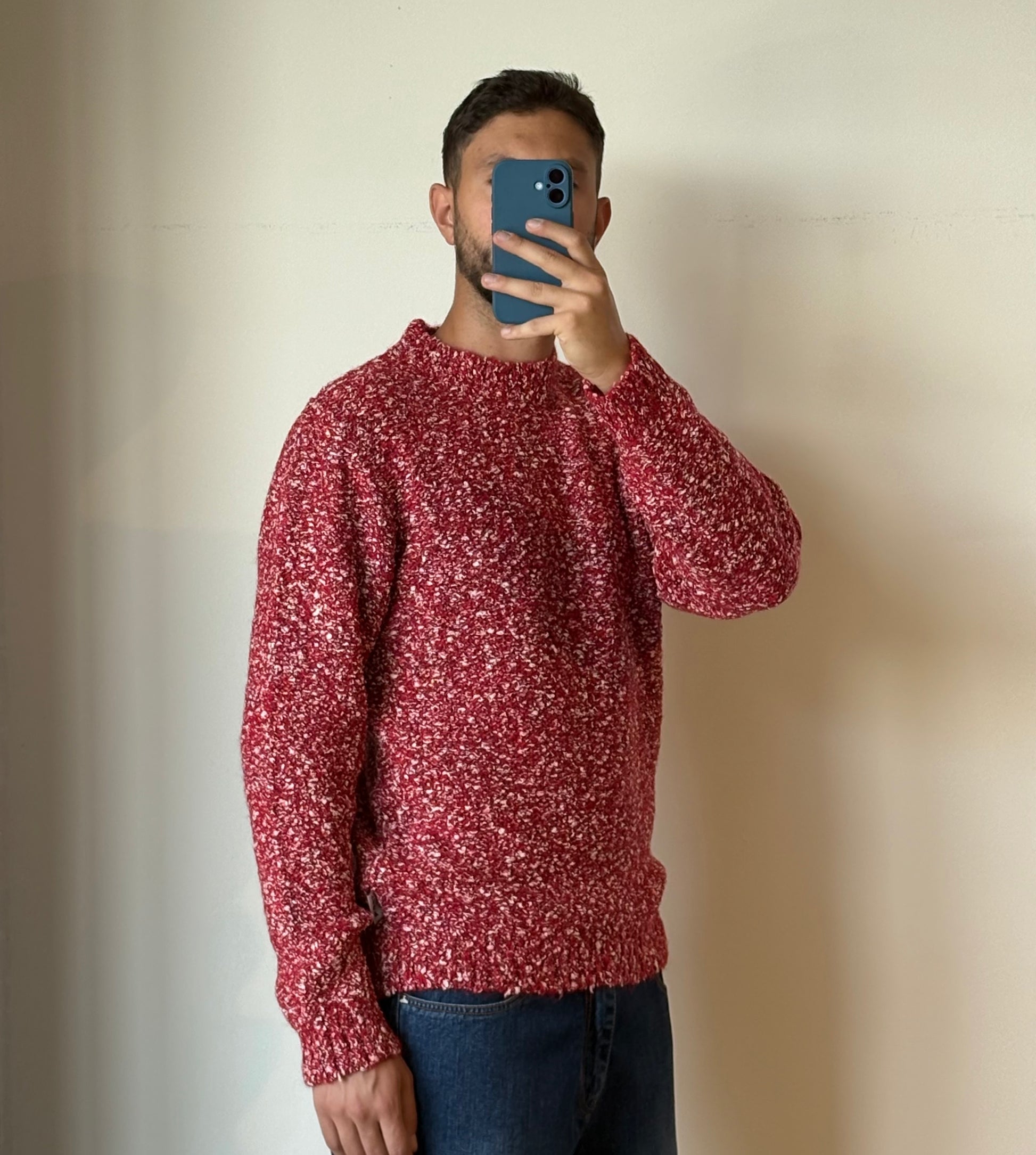 Girocollo bicolore manica lunga in misto lana effetto rasato.